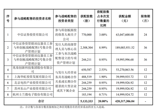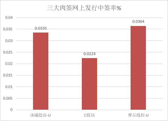此外,联讯仪器本次发行价为81.88元,共计发售2566.6667万股,战略配售占20%,战略配售外的80%,网上占30%发行616万股,网下占70%。网上超购5956倍,中签率低至0.0224%,远低于沐曦股份和摩尔线程中签率。