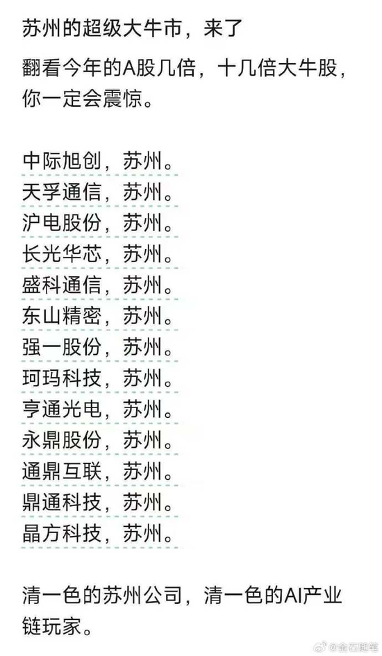 4月24日,A股市场再度迎来造富盛宴,而且最大赢家又是苏州。不知不觉间,苏州的超级牛市已来,10倍大牛股纷至沓来,A股俨然成为苏州后花园,随时可以信手拈来。
