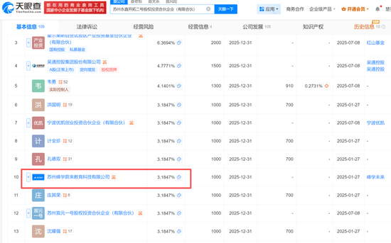 金石杂谈查询发现,张雪峰控制的苏州峰学蔚来教育科技有限公司持股永鑫荣耀;据市场消息,张雪峰以1600万出资持股2.6667%。天眼查显示,张雪峰旗下的峰学蔚来还持股永鑫开拓二号3.1847%的股权。