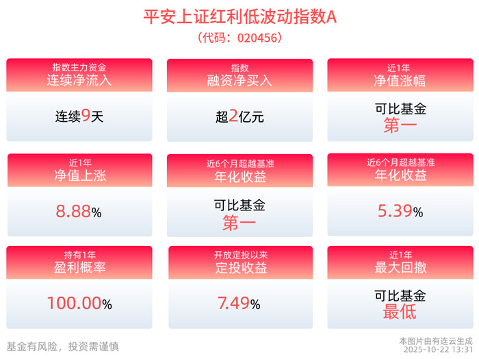 关注平安上证红利低波动指数A(020456),关联基金(平安上证红利低波动指数E:024611;平安上证红利低波动指数C:020457)。