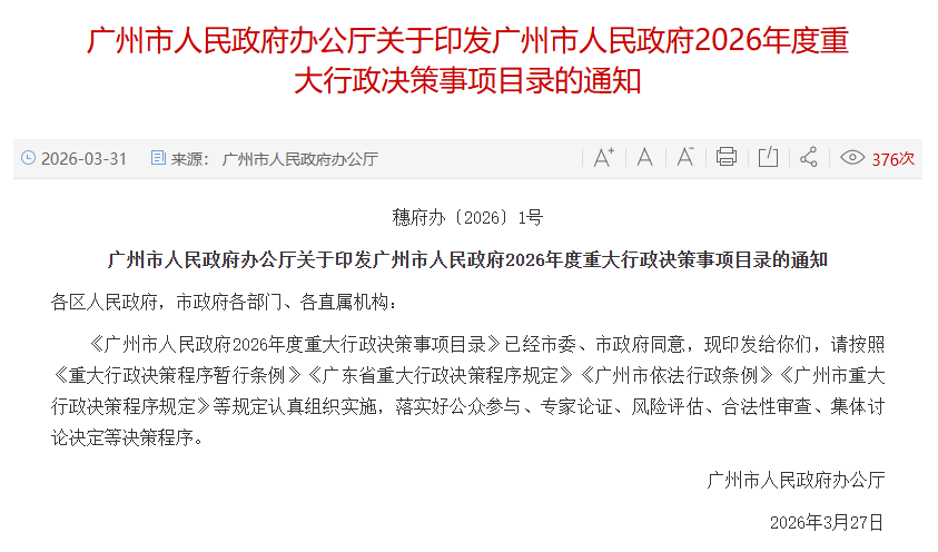 这两项调整是广州市政府2026年的重大行政决策事项,旨在让价格机制更合理、更可持续。